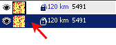 We will use polylines to create boundaries of the parcels. Select all objects in the map (main menu > Edit > Select All) and group them together for easier manipulation (main menu > Objects > Group). Then use copy and paste (CTRL+C, CTRL+V) to create exact copy of polygons on top of the original ones. The red arrow on below picture marks the copy of grouped polygons in the list of map objects.