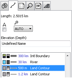 The list at the bottom contains available line types. Always assign the proper type to the line object, because the line type defines how the object is displayed in the GPS. Each row in the list contains color icon and gray scale icon, line style and the type name. Icons show the color (or several colors) used for displaying of this line type in the color and monochrome GPS.
